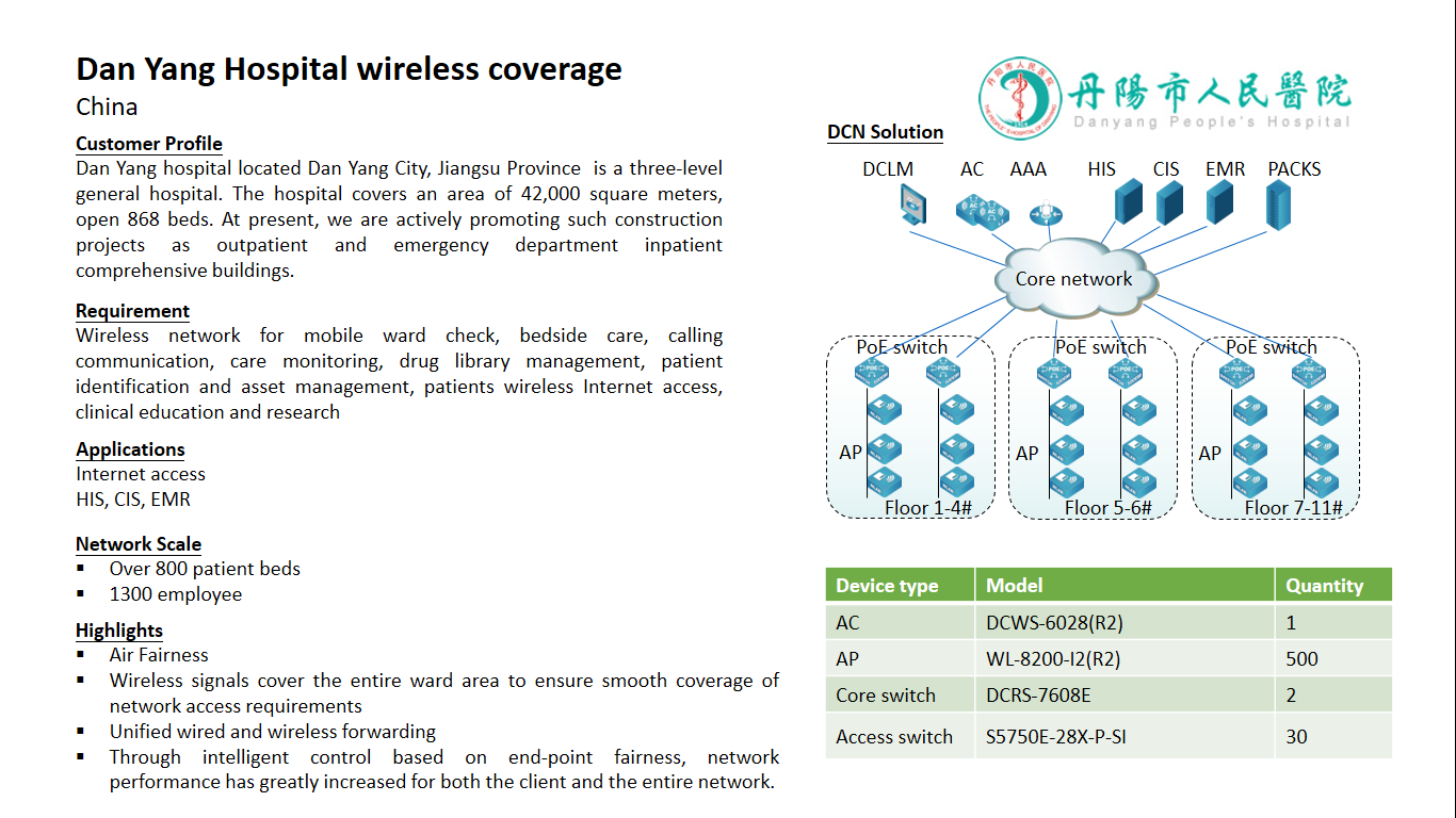DCN focuses on data communication field with full product lines, including Switch, Wireless, Router, Security, and Cloud services. With continues invest on RD, DCN is the leading IPv6 solution provider, the first Chinese company won IPv6 Ready Gold certificate and first manufacturer won OpenFlow v1.3 Certificate. DCN already provide products and solutions to all Chinese provinces and over 40 countries worldwide, established sales and service center at Europe, America, Russia, CIS, Southeast Asia and Middle East regions. DCN serves clients successfully from Education, Government, Operators, ISP, Military, and Enterprises. Based on independent development and sustainable innovation, DCN is continuous to provide network solution with intelligent, reliable and integrated network products and quality service for the clients. |